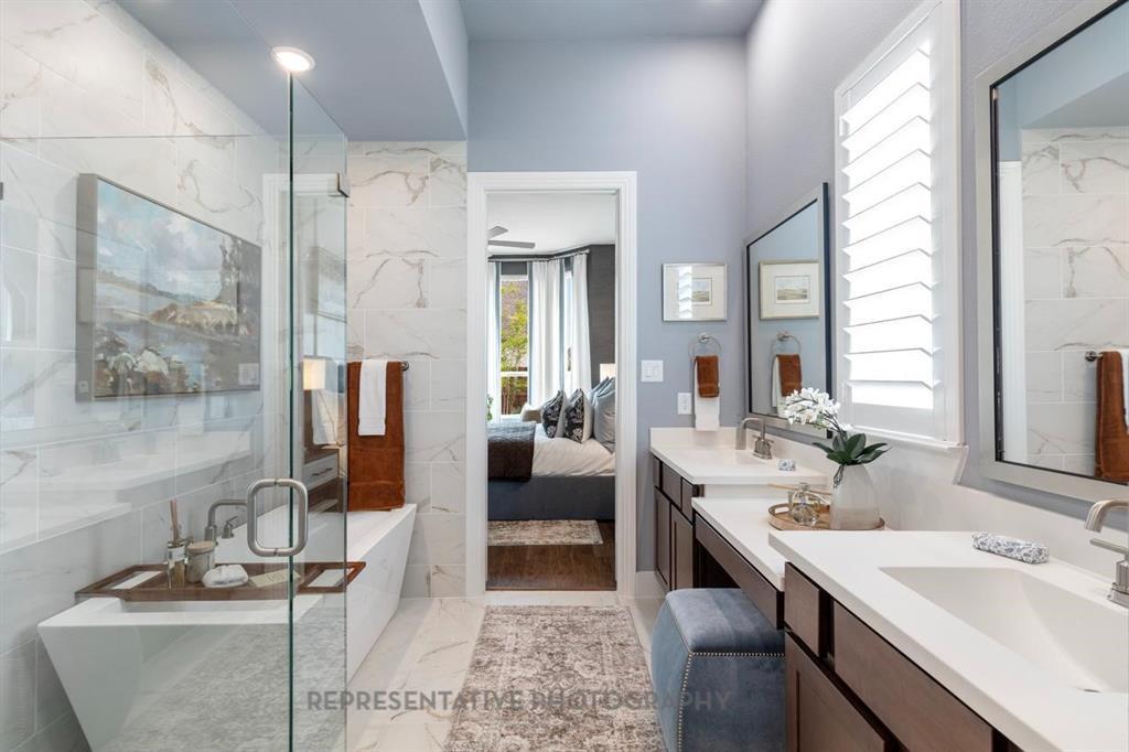 Beautifully designed home featuring a Primary Bath with a Drop-In Tub and Separate Shower, a charming Primary Bay Window, and upgraded Rear Brick for enhanced curb appeal. Enjoy an Extended Outdoor Living area perfect for entertaining or relaxing, plus a smart Bath ILO Storage layout for added functionality. Thoughtfully planned with spacious bedrooms, open living areas, and modern finishes throughout—ideal for both everyday living and hosting