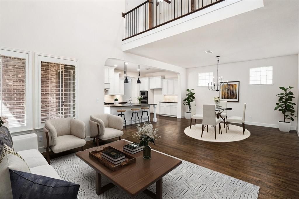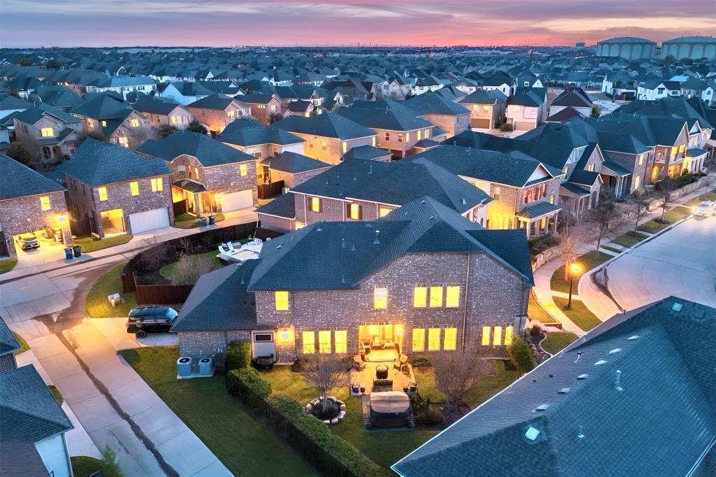 Located on one of the largest lots in The Village of Twin Creeks, this two-story home has over $150K in upgrades.Three living areas plus study. Study and primary bedroom are downstairs. Hardwood floors on most of the bottom level except for the primary bedroom and wet areas.Eight foot solid wood doors downstairs. Plantation shutters throughout. 4 bedrooms, 3 living areas and a study. A curved staircase is the focal point of the entry. Study with french doors is located off of the entry. The two story family room is light and bright, has a ceiling fan and is completely open to kitchen and dining area. The kitchen includes freshly painted cabinets that go up to the ceiling above the 5 burner gas cooktop. Large island and walk in pantry.There is a half bath down as well as another room with a built-in desk.Primary bedroom is spacious with upgraded patterned carpet, tray ceiling.The bath features an oversized, walk-in shower with pebble base and granite seat.There are two primary walk in closets with off season rods. Upstairs are 3 bedrooms, a large gameroom and media room. There are two full baths upstairs - one is a jack and jill. The oversized backyard features an extended patio. Hot tub remains.Lovely landscaping, wrought iron fence. The garage has epoxy flooring. Beautiful home and ready for move-in.