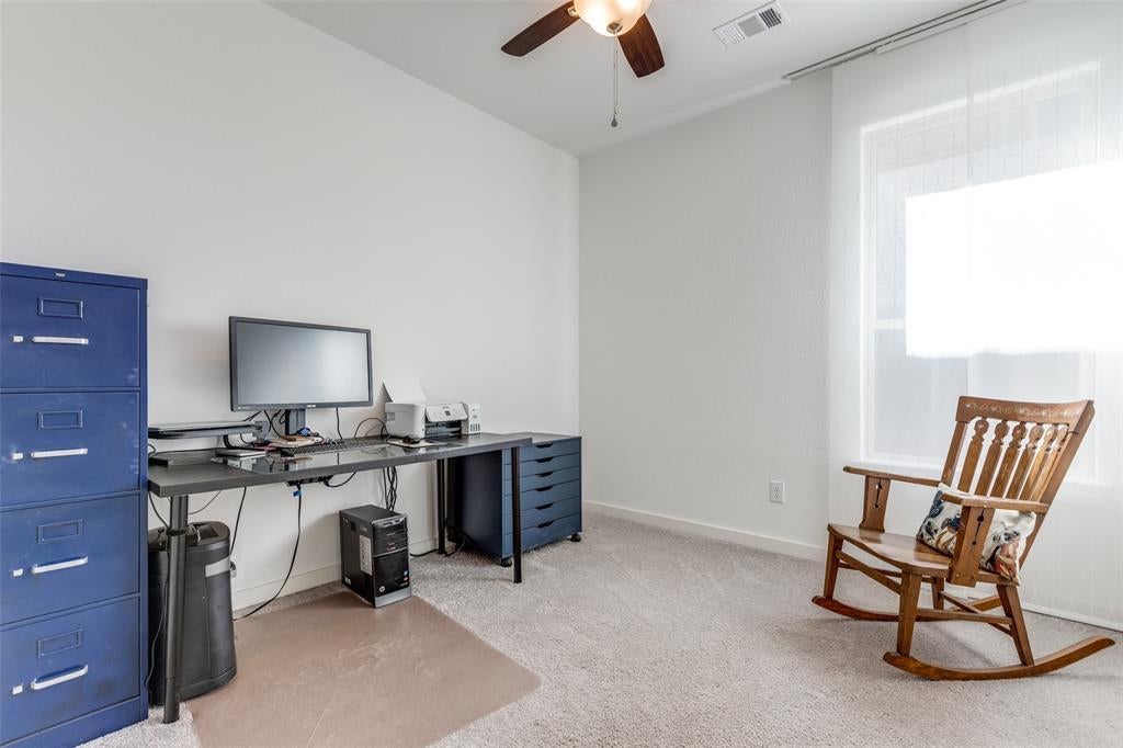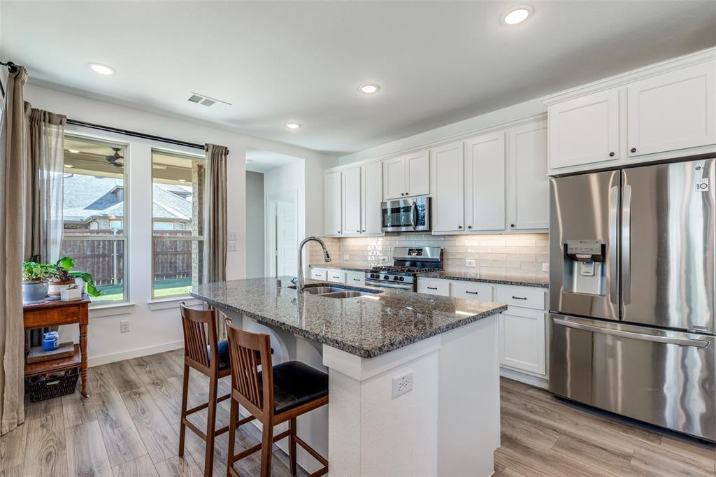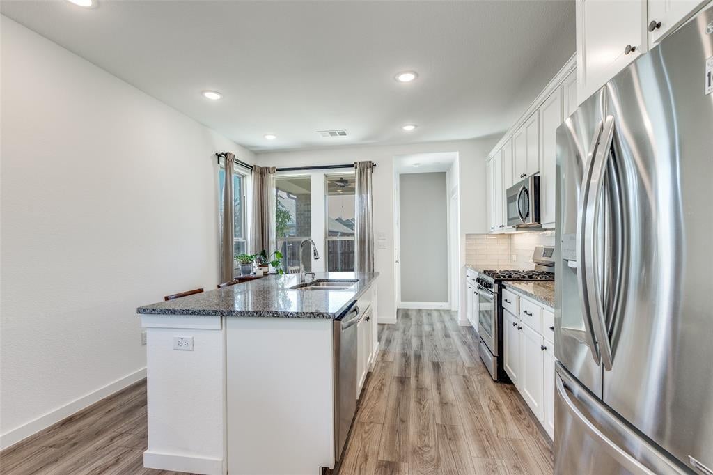 Fantastic find in Sandbrock Ranch. Award-winning Highland Homes built with green features, designer touches and details that make a house a Home. Single story with 3 bedrooms, 2 Full Baths, and plenty of storage. The elegant Master suite with bay windows features a walk-in closet and an oversized walk-in shower with double sink vanity. The split secondary bedrooms share a full bath with a shower-tub combo. The gourmet kitchen features 3 cm granite countertops, gas range, 42 inch cabinets for extra storage, large pantry, and an island for dining and food prep. Live comfortably with a Tankless water heater and Trane 16 seer HVAC with fresh air return connected to the main AC to help reduce dust, odors, and indoor contaminants for improved indoor air quality. Energy star rated exhaust fans in all bathrooms. Enjoy the covered back patio with charmingly landscaped back and side yard areas. Sandbrock Ranch is more than a neighborhood, it's a lifestyle. Residents enjoy year-round events with a luxury carriage house, infinity edge pool, fitness center, 2 dog parks, miles of scenic trails, and the Ultimate Tree House. The lakes feature catch-and-release fishing. Close to PGA Tour HQ, HEB, Walmart, Costco, and numerous restaurants and retail. Great opportunity to locate in one of North Dallas' most desirable master-planned communities.