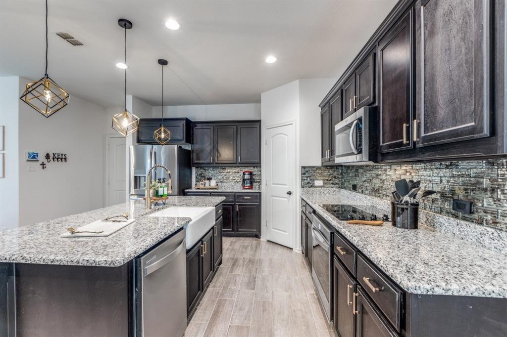 Discover this beautifully designed 3 bedroom, 2.5 bathroom home, perfectly situated in a vibrant Aubrey community. Upon entering, you're greeted by an expansive open floor plan that seamlessly connects the living areas. The large kitchen is the heart of the home, appointed with ample counter space and a generous dining area, perfect for hosting dinner parties or casual family meals. The living room is enhanced by a cozy fireplace, creating an inviting ambiance for every season. The primary bedroom, conveniently located on the first floor offers a tranquil retreat with its placement at the rear of the home, ensuring peace and privacy. It features a spacious en-suite bathroom and a large walk-in closet providing abundant storage space. Upstairs, a substantial game room awaits, ideal for recreation or as a flexible space to suit your personal needs. Two additional bedroom's and a full bath complete the the upper level, offering comfort and convenience for residents and guests alike. The exterior of the home is equally impressive. a beautifully landscaped yard provides an elegant entrance, while the quiet backyard presents a serene escape with a covered back porch perfect for relaxation and outdoor dining. The epoxy finished 2 car garage not only ensures durability but adds a polished look to your workspace or storage area. Residents of this community enjoy access to a sparkling pool, offering the perfect spot for fun and relaxation during warmer months. This property truly embodies the best of both indoor and outdoor living, making it an excellent choice for hosting gatherings or indulging in quiet weekends at home.