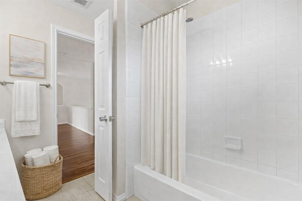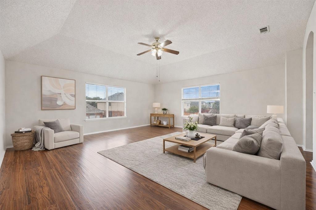 Immaculate 4-bedroom, 2.5-bathroom, Formal Living room accompanied by large living room, Formal dining area, breakfast area, Media-Game room home is nestled in the coveted Allen Independent School District featuring an open floor plan bathed in natural light, featuring sleek new stainless steel appliances, fresh paint, and new beautiful wood laminate floors and new quartz counter tops in bathrooms throughout. The spacious master suite is a private retreat, while the upstairs game room offers additional entertainment space. Enjoy outdoor living in the expansive backyard.