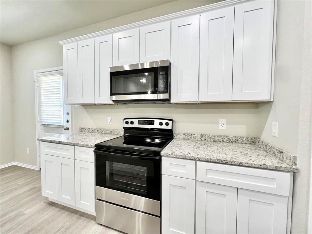 Welcome to this brand-new duplex in the heart of Burleson, featuring a beautifully designed 3-bedroom, 2.5-bath layout. This home boasts a thoughtful floor plan with modern finishes, granite countertops, luxury vinyl plank flooring, and stylish details throughout. Upstairs, you’ll find two spacious bedrooms with plush carpeting and generous closet space. The primary suite offers a large walk-in closet and an ensuite bathroom complete with a double vanity and private water closet.