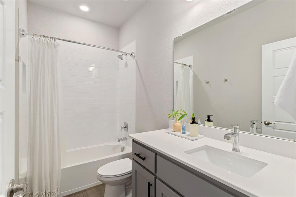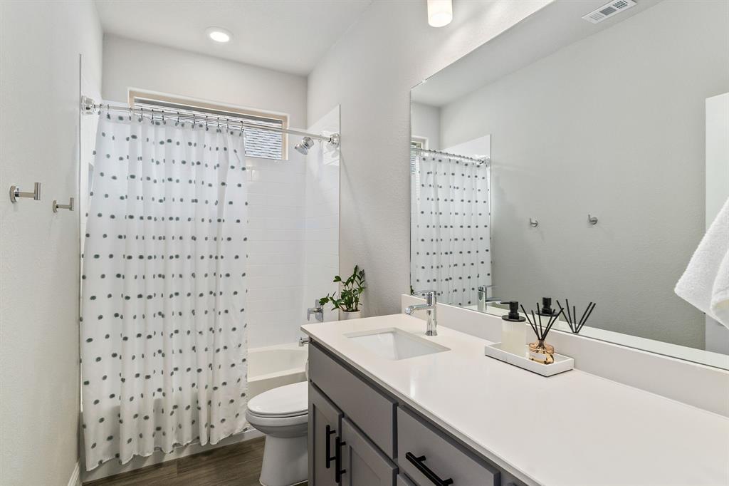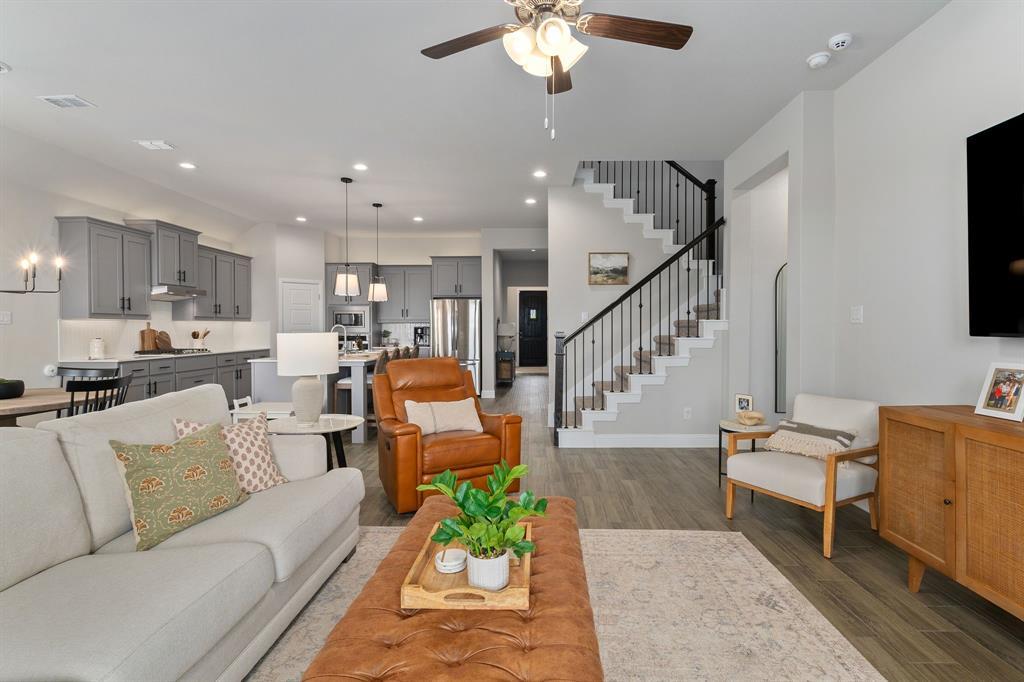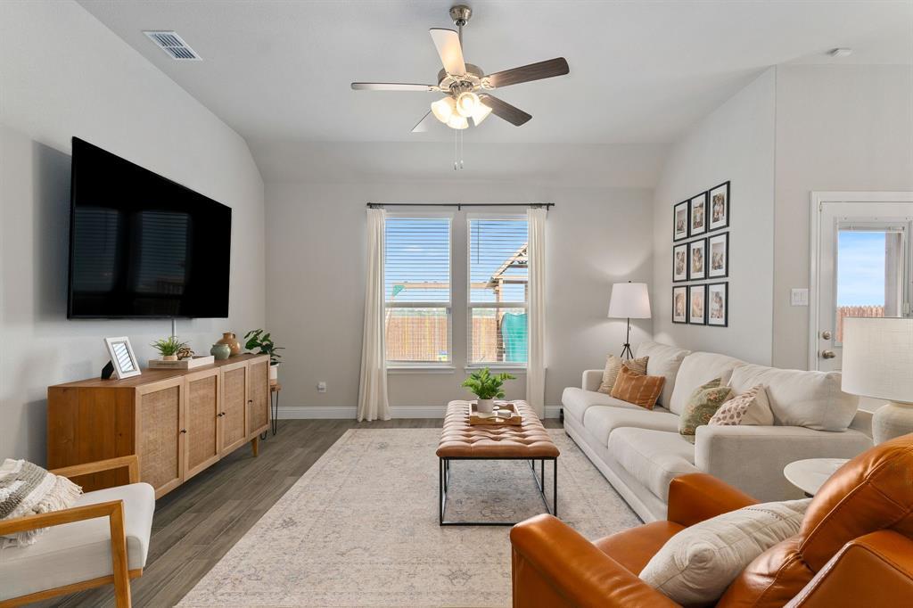NO MUD or PID - This elegant home seamlessly combines modern design with comfortable living. The home is west-facing and offers four bedrooms, three full bathrooms, an office, and a bonus room, providing ample space for family and guests. The kitchen is equipped with stainless steel appliances, quartz countertops, and abundant cabinetry, ideal for both casual dining and entertaining. Wood-look tile flooring and designer lighting enhance the home's sophisticated ambiance. Notably, this home is equipped with solar panels, promoting energy efficiency and offering potential savings on utility bills. The seller will pay off the solar panels at closing, providing added value to the new homeowner. The backyard features a covered patio, ideal for outdoor gatherings. Additionally, the property is conveniently located just three doors down from the community pool and playground, offering easy access to leisure and recreation. Discover the perfect blend of luxury and comfort in this remarkable home.