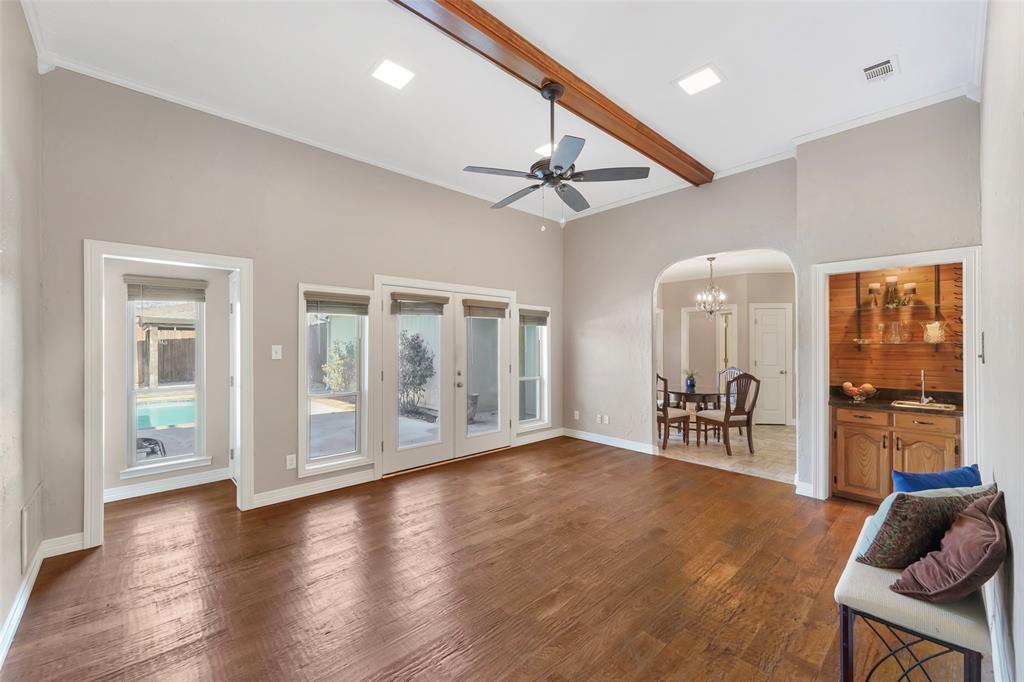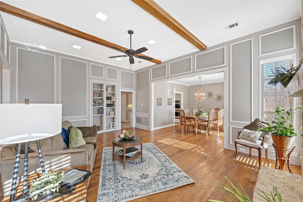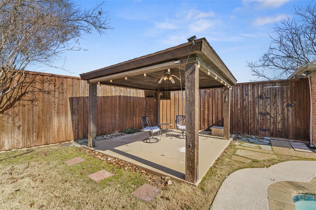 Stunning, hard-to-find one-story home featuring 4 bedrooms and 3 full baths, tucked away on a quiet cul-de-sac in the heart of desirable West Plano. This exceptional residence offers an open, split-bedroom floor plan with hand-scraped hardwood floors, soaring ceilings, and abundant natural light throughout. The inviting family room showcases a stone fireplace with gas logs and custom built-in bookshelves. The spacious kitchen is a chef’s dream with stainless steel appliances, double ovens, and ample storage—perfect for everyday living and entertaining. Enjoy the flexibility of two living areas and two dining areas, along with beautifully updated bathrooms and a custom closet system. Step outside to your private backyard retreat—an entertainer’s paradise complete with a sparkling pool featuring flagstone coping, and a covered pergola for relaxing year-round. Move-in ready. No HOA. Prime location. All of this is conveniently located near shopping, dining, and parks, and zoned to award-winning Plano ISD schools. A rare West Plano gem—don’t miss it—schedule your showing today!