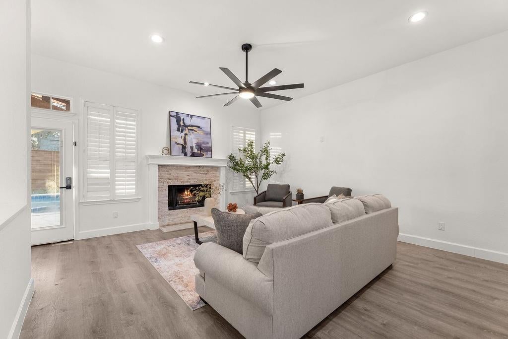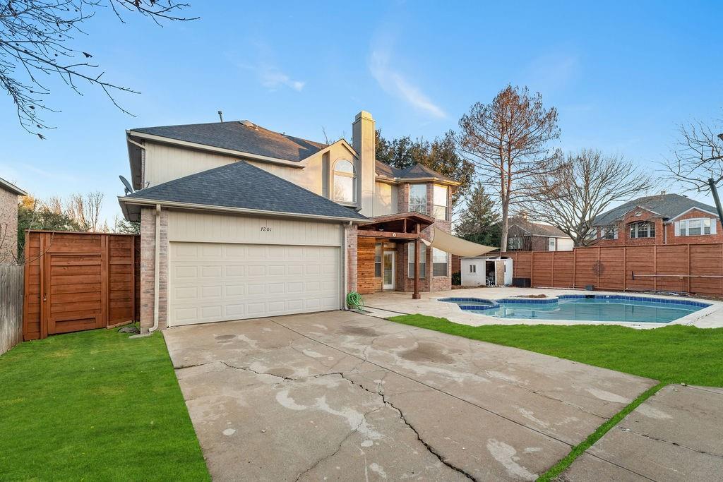10K SELLER CONCESSIONS- Welcome to 7201 Milton Lane, a gem nestled in the heart of Plano, Texas! Situated on a generously sized corner lot, this meticulously maintained home combines modern elegance with everyday comfort, offering a lifestyle that’s both luxurious and inviting. Step inside to discover a bright, open floor plan featuring soaring ceilings, laminate floors, and an abundance of natural light. The chef-inspired kitchen is a showstopper, equipped with sleek countertops, stainless steel appliances, a pot filler, a pantry, and a spacious island. The adjoining living area, complete with a fireplace, creates a warm and welcoming hub for relaxation and get-togethers. Downstairs you'll fine a bedroom and full bath, perfect for guest or in-law quarters. The 2nd floor primary suite is your private retreat, boasting a spa-like en suite bathroom with dual vanities, a soaking tub, and a walk-in shower. With generously sized secondary bedrooms and a versatile second living area, there’s plenty of space for everyone to spread out and make it their own. Outside, the backyard is a true oasis with a covered patio, and a sparking pool as well as alley access via an electric gate that leads to the 2-car garage. Located in a wonderful and friendly neighborhood, this home is just moments from schools, shopping, dining, and parks. Plus, with easy access to major highways, commuting is a breeze. Don’t miss the chance to make 7201 Milton Lane your forever home—schedule your tour today!