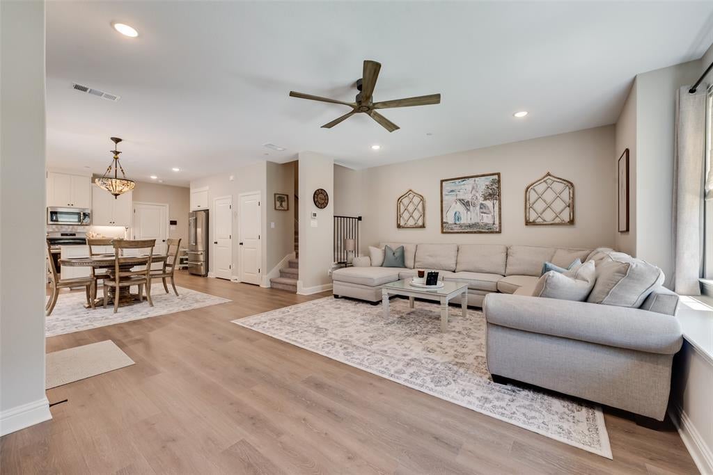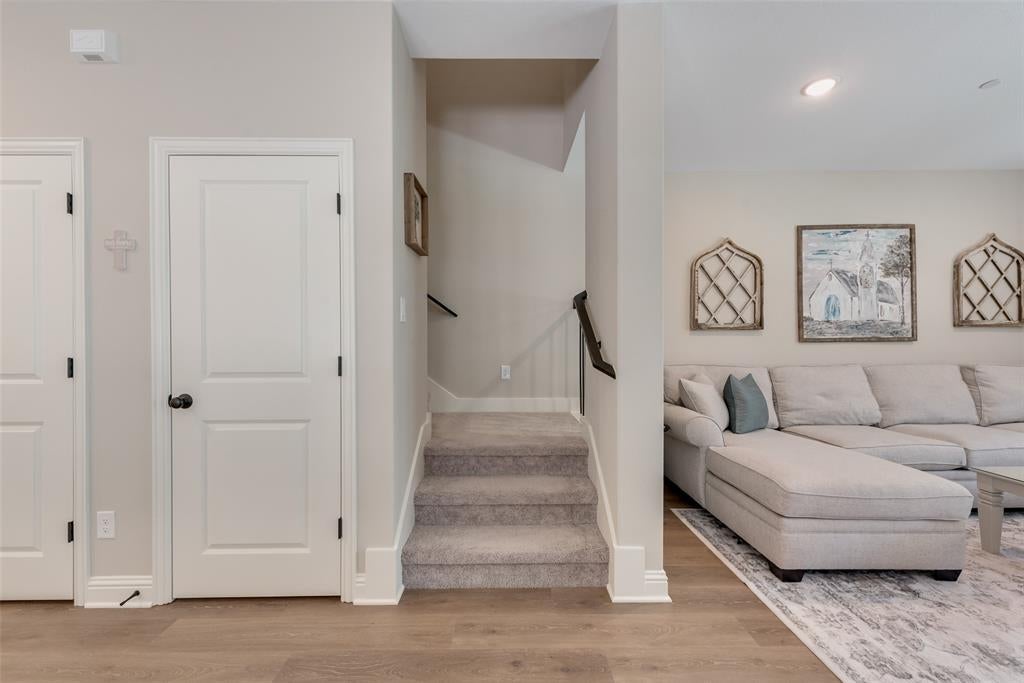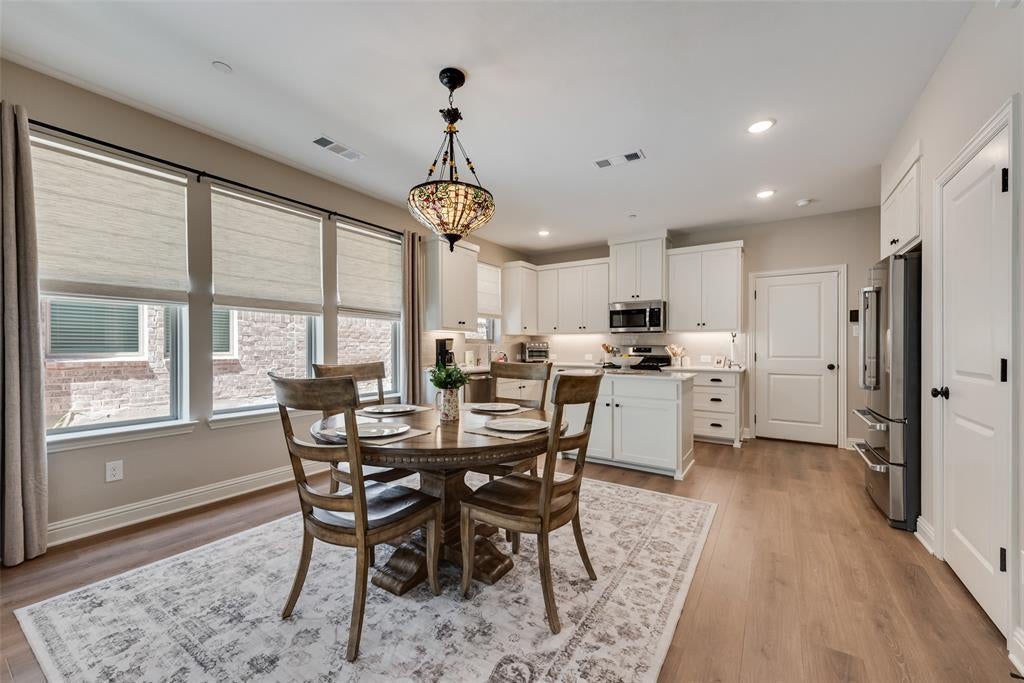 Luxury can be yours in this C B JENI DALTON II floor plan which has almost $20K in upgrades! The abundant windows on the first floor are enhanced by the Levolor top-down, bottom-up cordless blinds that put you in control of privacy and the amount of natural light that allowed to fill this beautifully upgraded space! From Pergo water tight laminate flooring that provides versatility for everyday living to the upgraded finishes of the hardware, this end unit townhome has been taken to the next level! The kitchen boasts of sleek stainless steel appliances, topped by elegant countertops and framed with a designer backsplash and a perfectly sized kitchen island. The fixtures in the downstairs half-bath also reflect the elegance of the living area and kitchen. Upstairs, the primary bedroom is a true retreat with a large walk in closet and en suite bath which gives spa vibes! The generously sized secondary bedrooms flank the game room or flex area which is perfect for relaxing. This SMART home is energy-efficient and has a tankless water heater, gas heat, a 16 SEER AC system with a 10 year parts warranty, new ceiling fans in the living area and primary bedroom. Are you ready to move? Love the floorplan? Let’s talk!